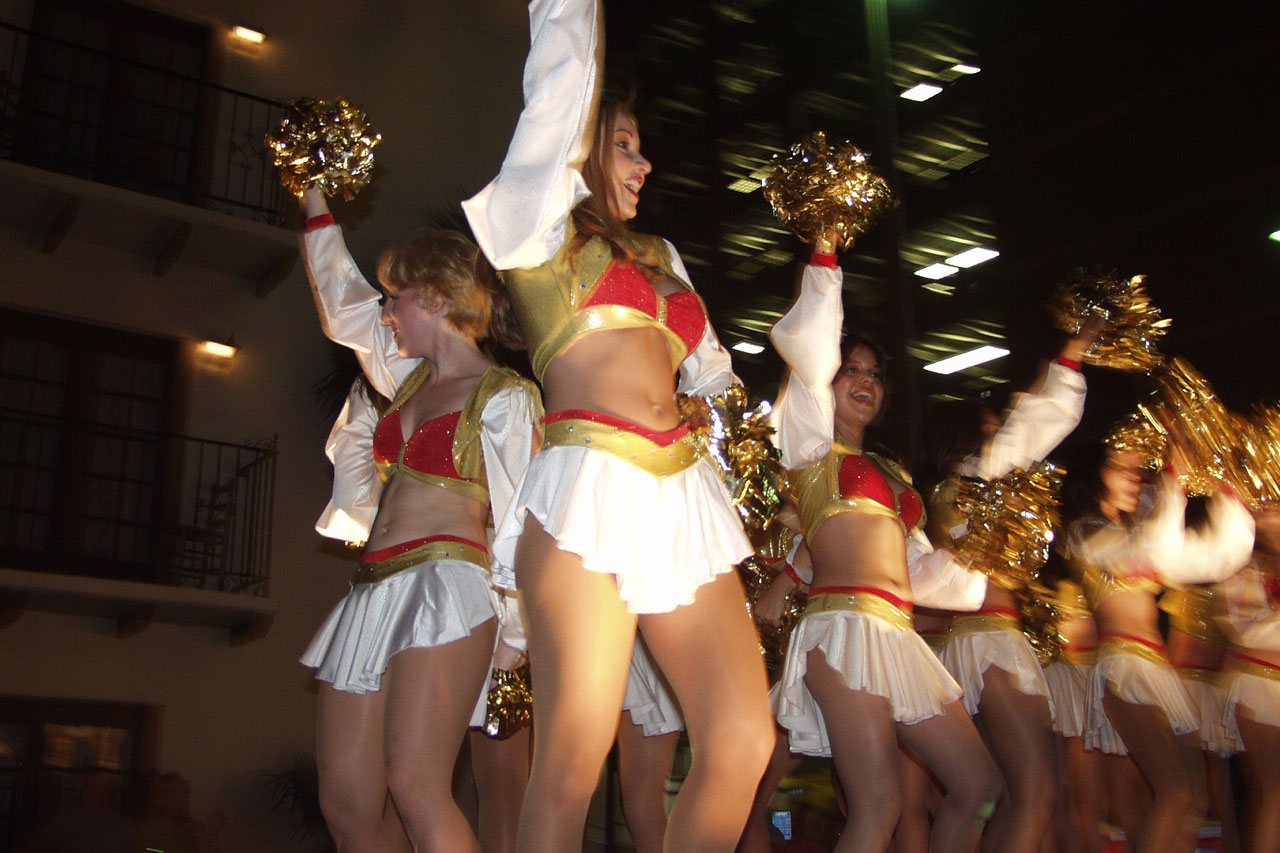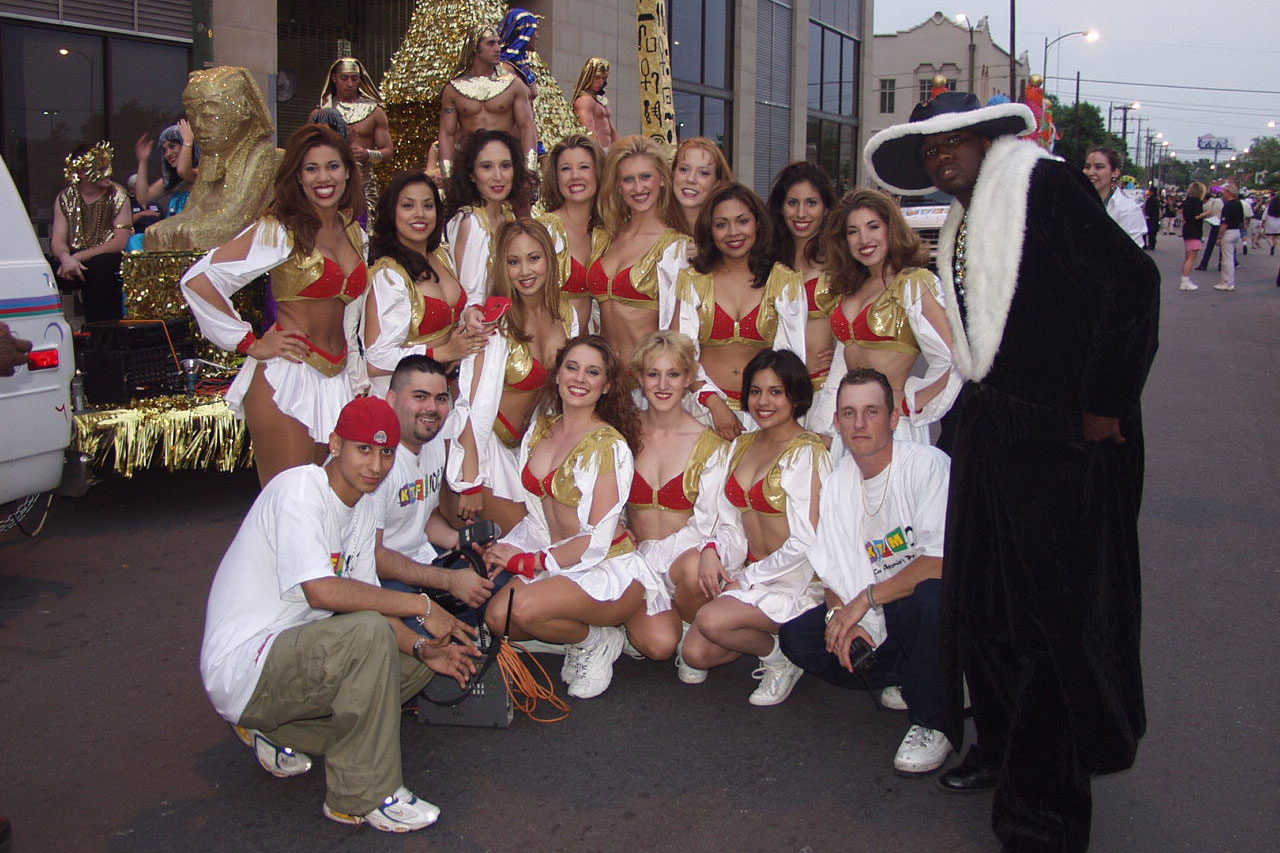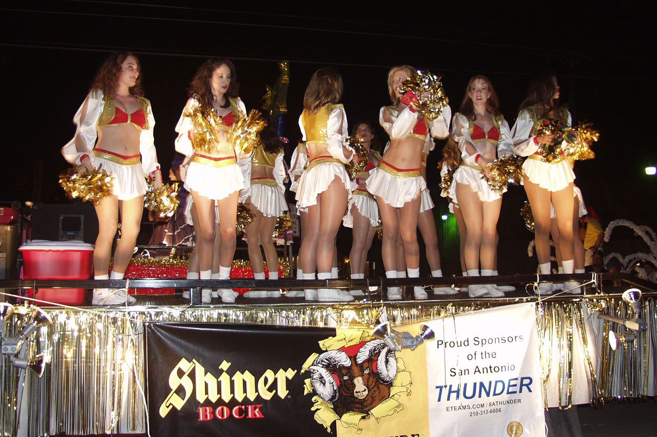 The Lightning Cheerleaders rode in the KTFM Masquerade Parade on April 14, 2001.