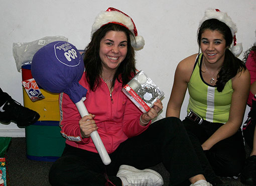 The San Antonio Roses traded gifts during their Christmas party held after rehearsal.