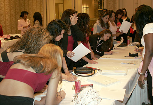 Members of the San Antonio Roses traveled to Houston, TX to attend the All-Pro3 Real Deal Workshop. They learned how to prepare for pro cheerleader tryouts during a presentation which included comments from the directors of the Tampa Bay Buccaneers and Houston Texans. They were taught dance combinations and danced along side current pro cheerleaders.