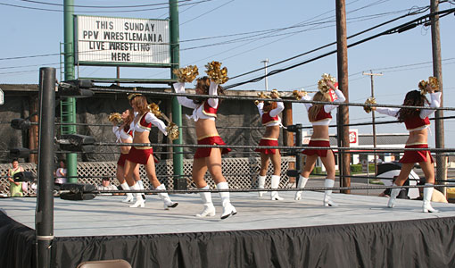 Members of the San Antonio Roses performed between wrestling matches at Fatso's. The event occured right before the Pay-Per-View Wrestlemania event which was shown at Fatso's right after the Roses' performance.