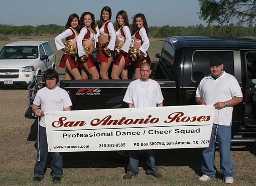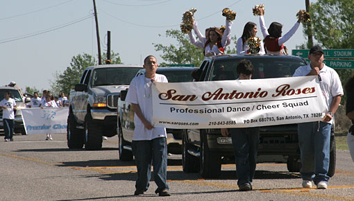The San Antonio Roses took part in the 2006 Poteet Parade in Poteet, TX. Before the parade started, they took photos with other parade participants including Premiere Cheer from San Antonio.