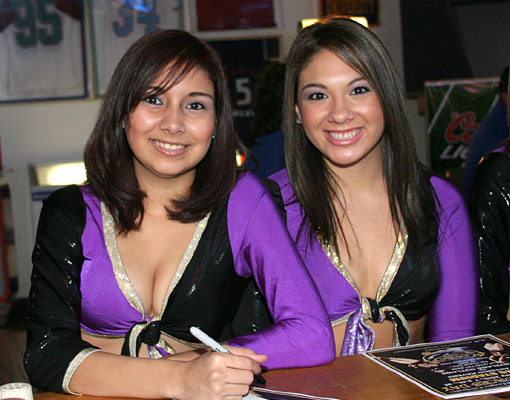 Members of the San Antonio Roses as the Lady Ravens attended the NFL Draft Day event at Fatso's Sports Garden. The Ticket 760 was on hand broadcasting the draft. The girls signed autographs and posed for photos.