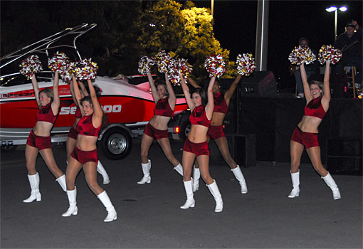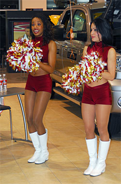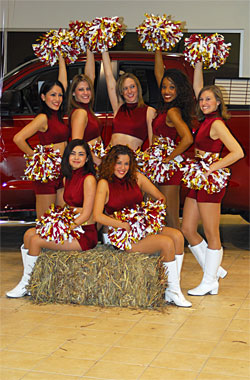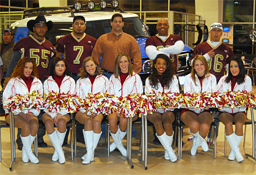 Members of the Warrior Cheerleaders were driven to Red McCombs Toyota in a beautiful limousine courtesy of the San Antonio Warriors Football Organization. The San Antonio Warrior's players and cheerleaders were invited to Red McCombs Toyota to help launch the new Toyota Tundra. The Warrior Cheerleaders autographed their 2007 squad photo, took photos with staff and the public, and performed routines at the Red McCombs tailgate party.