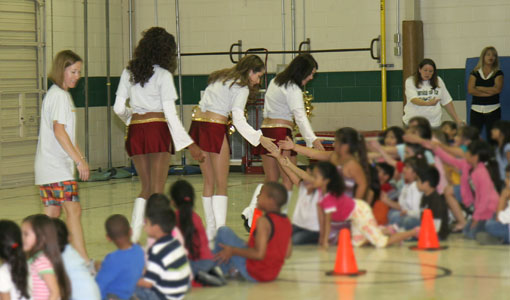 Erynn, Stacie, and Vanessa attended the Meadow Village Elementary Taks Test Pep Rally on April 2, 2007. They met with the children and performed routines. Soon after the kids got off the floor showing off their own moves dancing with the Roses.