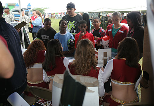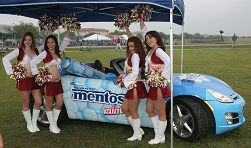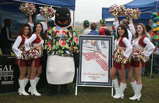Erynn, Erin, Flip, and Merlinda attended the Fiesta opening ceremonies at Fort Sam Houston helping the Quarry Market Regal Cinema Theater promote the upcoming "Surf's Up" movie. They signed autographs and posed for photos with attendees and penguins. It was a drizzly day but the girls really had fun.