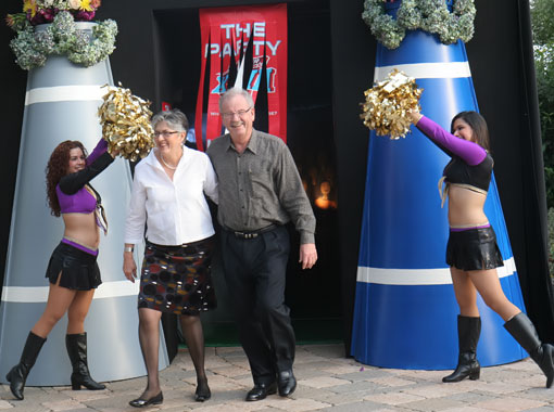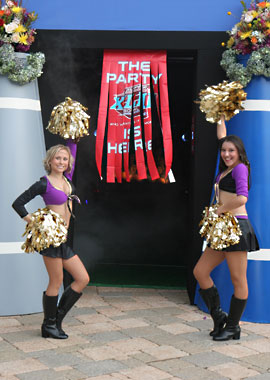 Members of the San Antonio Roses participated in a Super Bowl party where they greeted guests in a Super Bowl Tunnel.