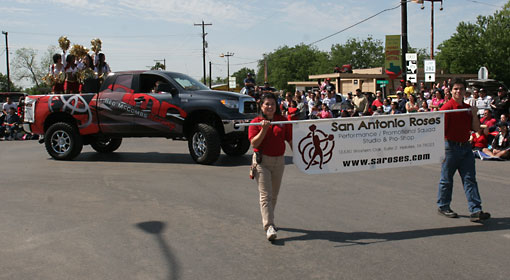 Seven members of the San Antonio Roses along with a Rosebud participated in the 2008 Poteet Strawberry Festival Parade on April 12, 2008. Special thanks to Red McCombs Toyota for the use of the beautiful Toyota Tundra.