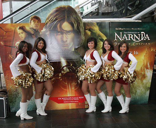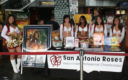 The San Antonio Roses participated in the premiere of Narnia Prince Caspian at the Quarry Market Theater on May 17, 2008. The Roses passed out promotional items and read a book to children.