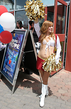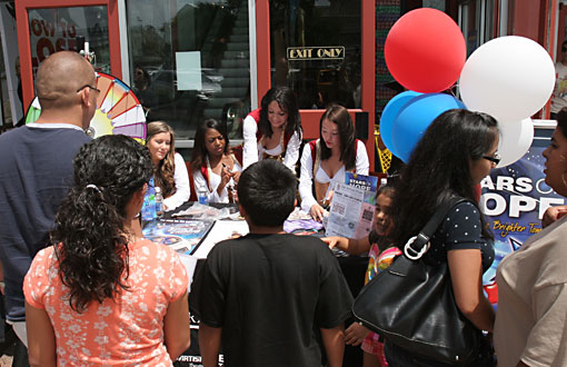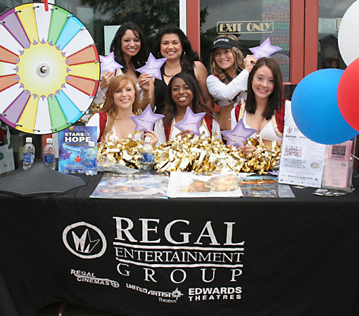 Amber, Aisha, Teresa, Natalie, and Riplee helped collect donations for the Will Rogers Institute and the Boys and Girls Club at the Stars of Hope table at the Regal Cinema Quarry Market. Individual who stopped by had a change to spin the wheel for free prizes. The Roses also passed out free autographed Roses group photos.