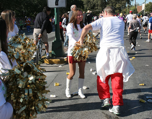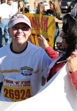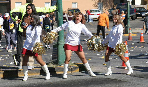 Members of the San Antonio Roses participated in the inaugural Rock 'n' Roll Marathon in San Antonio on November 16, 2008. It was 32 degrees at 6:00 AM and the ladies were ready to cheer on the runners.