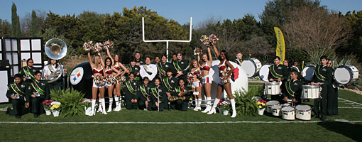 Members of the San Antonio Roses participated in a private Super Bowl party on February 1, 2009 (Super Bowl Sunday). The ladies greeted guests and performed to the live music of the McCollum High School band.