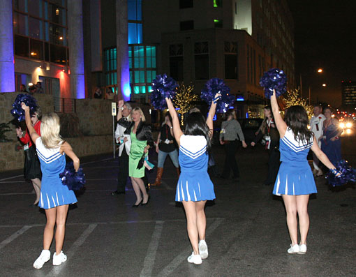 Kristy, Jennifer, Merlinda, Ivania, Alyssa and Michelle were driven to Austin, TX to perform as cheerleaders for a corporate event for Prudential on March 8, 2010. The ladies dressed in blue and white high school cheerleader uniforms and waited in the green room until guest started arriving. The Roses performed and greeted guests at the Austin Music Hall entrance and later performed a routine on stage.