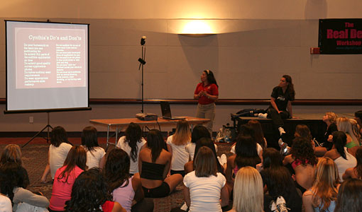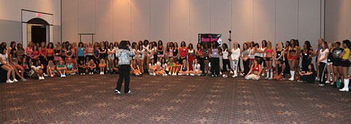 Stephanie, Jessica, Alyssa, Desi'ree, Merlinda, Sandy, Ivania, Allison and Jennifer took a short drive to Houston, TX to take part in the 2010 Real Deal Workshop. San Antonio Roses Director, Cynthia Trinidad was a guest speaker and instructed the ladies on the Do's and Don'ts of auditions. Other speakers and choreographers included Alto Gary - Houston Texans Cheerleader Director, Derric Whitfield - Houston Energy Director, Marilu Harman - Houston Dynamo Girls Director and Kristin Randall - Houston Aero Dynamics Captain.