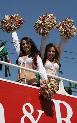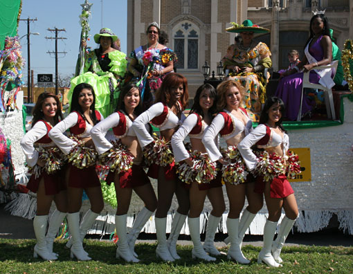 Edie, Allison, Michelle, Desi, Stephanie, Marissa, and Filly along with Roses Director Cynthia Trinidad - Mrs. Petite Texas UA 2011 rode on the Lion and Rose Restaurant and Pub's double-decker bus in the 2011 St. Patrick's Day Parade on March 12, 2011. The Black Bexar Pipe Band were onboard providing the musical ambience. The ladies met Rey Feo LXIII Bill Drain and Miss San Antonio 2011 Ashley Dixon.