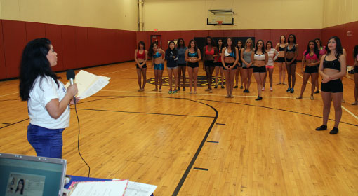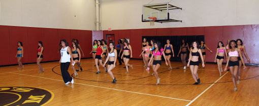 Candidates participated in the semi-final auditions for the 2013 Talon Sky Dancers at Gold's Gym. The semi-final routine was choreographed and taught by Talons Sky Dancer Choreographer, Melissa Martinez. Winners moved on to join returning Sky Dancer veterans at the Final Auditions on December 18, 2012.
