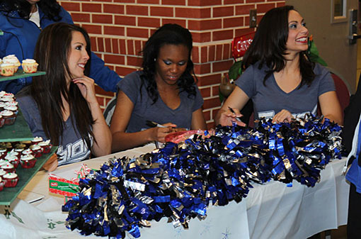Members of the AFL San Antonio Talons Football Players, Sky Dancers and Sky Dancers Director Cynthia Trinidad visited St. P.J.'s Children's Home for the Christmas Holiday and Santa's arrival. Swoop and Miss Fiesta San Antonio 2012 Katie Rivera were also on hand for the celebration.